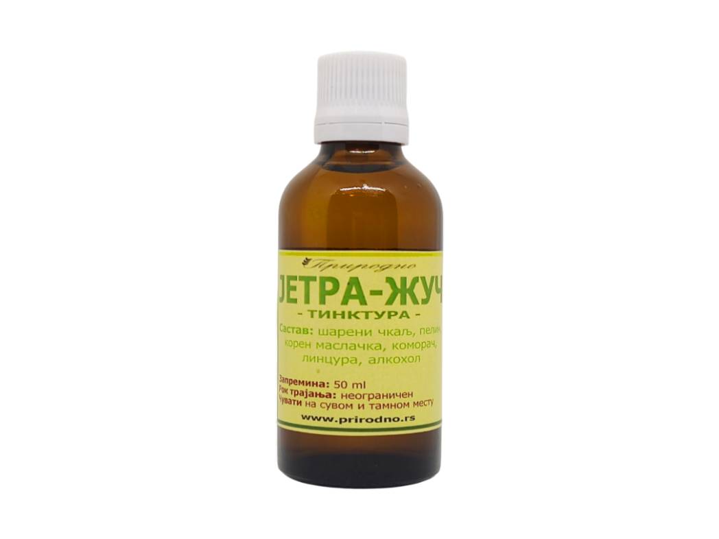 Tinktura JETRA – ŽUČ je alkoholni biljni rastvor koji normalizuje rad jetre i podstiče njeno čišćenje. Podstiče izbacivanje kamena i peska iz žuči. Takođe, pomaže kod zamšćene jetre, njenog uvećanja i upalnih procesa. Redovnom upotrebom ove tinkture dolazi do obnavljanja ćelija jetre.